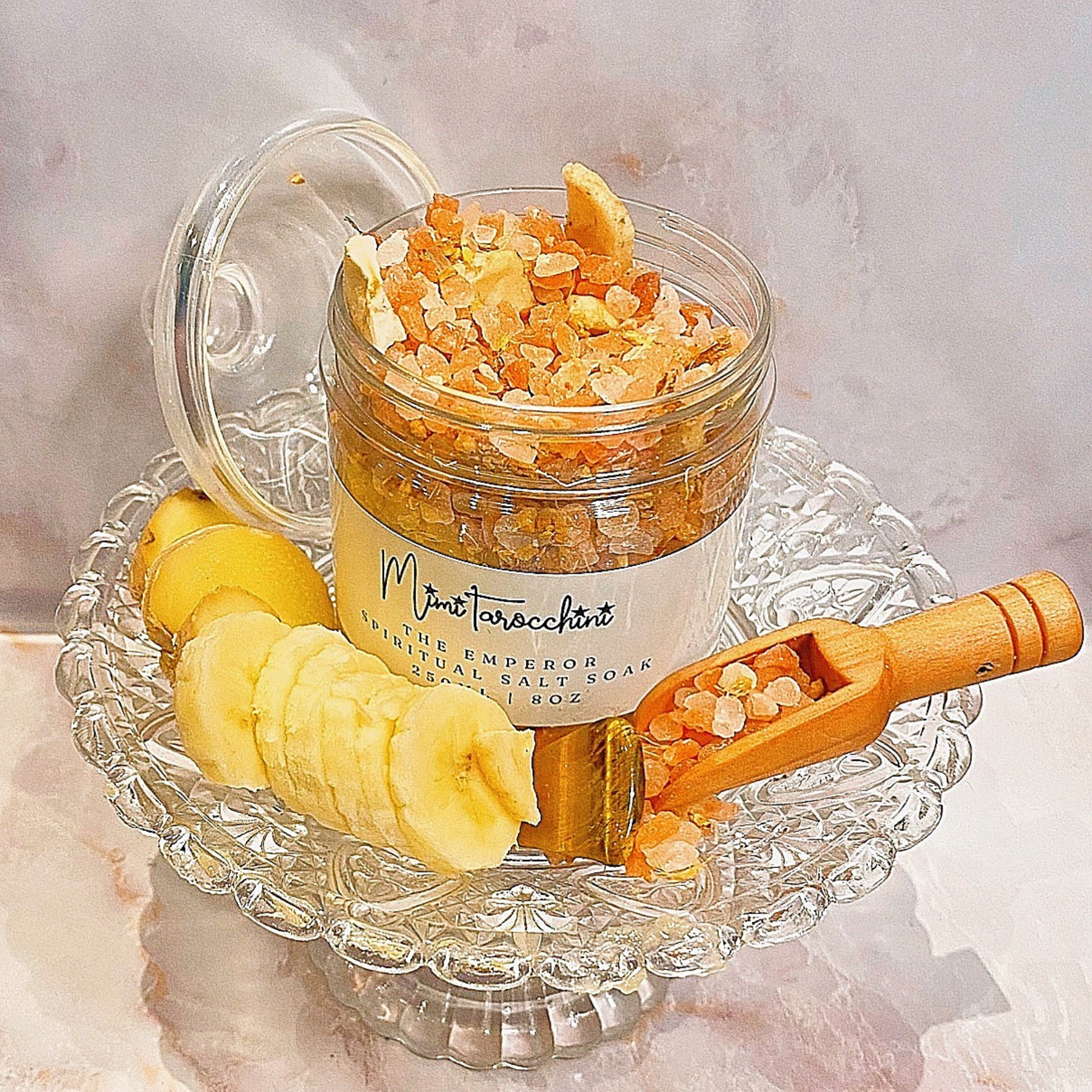 Aids divine masculine energy, contains Mimi T salt blend, banana, ginger and a Gold Tiger's Eye Tumblestone.