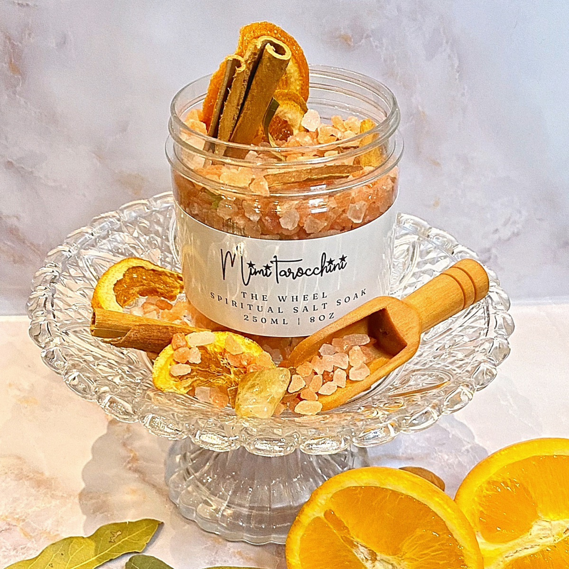 Attracts abundance, contains Mimi T salt blend, orange, bay, cinnamon and a Citrine Tumblestone.